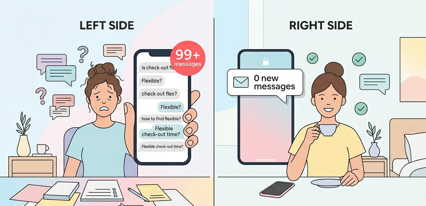 ✅ Hosts stay in full control of the content: the AI only answers based on the information you provide (House Rules, FAQ, local guide) — no hallucinated answers