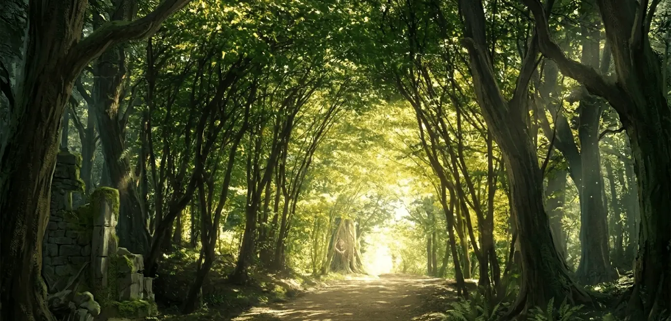 He followed that melody to the edge of a forest. He rested his paw against an old tree and gazed into the deep, silent woods. He didn't know what lay ahead — but he knew one thing: that melody needed him.
